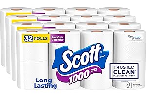 Scott 1000 Toilet Paper, 32 Rolls, Septic-Safe, 1-Ply Toilet Tissue